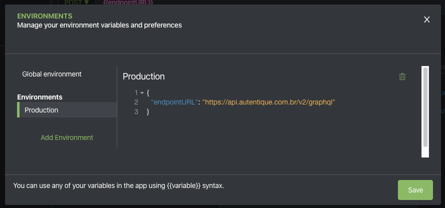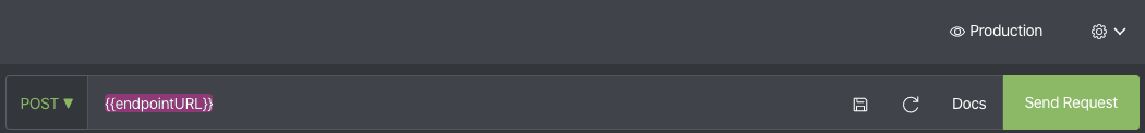 There are two interesting things in this image. The first is the {{endpointURL}}, which is the variable defined by the second interesting thing: the development environment, "Production," in the top right corner.